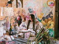 Morgane Richer La Flèche (b. Montreal, Canada, 1992) is a self-taught multidisciplinary artist based in the Hudson Valley, NY. She had two-person shows at Salon 21, New York, NY in 2024 and at Shelter Gallery, New York, NY in 2023. Group exhibitions include Lyles & King, New York, NY; Future Fair, New York, NY; Picture Room, Brooklyn, NY; Salon 21, London, UK; Lobster Club, Los Angeles, CA; Collar Works, Troy, NY; and Visionary Projects, New York, NY among others. Special projects include hand-painted corsets for Salter House, interior murals in private residences and at the Eliza Faulkner boutique in Montreal, and backdrops for music videos, performances, and editorial shoots.